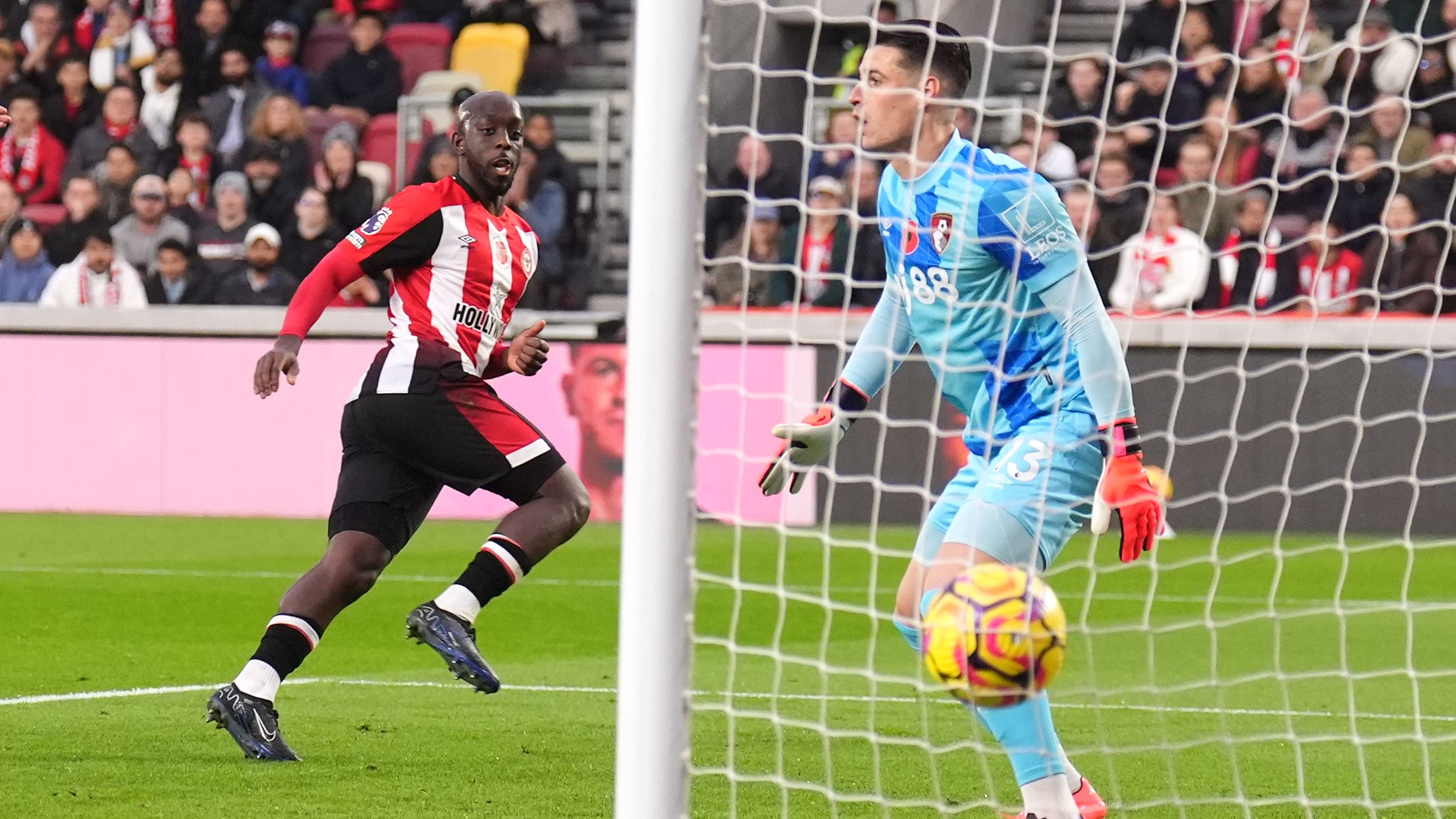 Mathias Jensen�s launched ball was flicked on in the area and, despite Bournemouth�s appeals for handball, Wissa was left free to head past the rooted Kepa Arrizabalaga (27), bailing van Den Berg out for his earlier mistake.