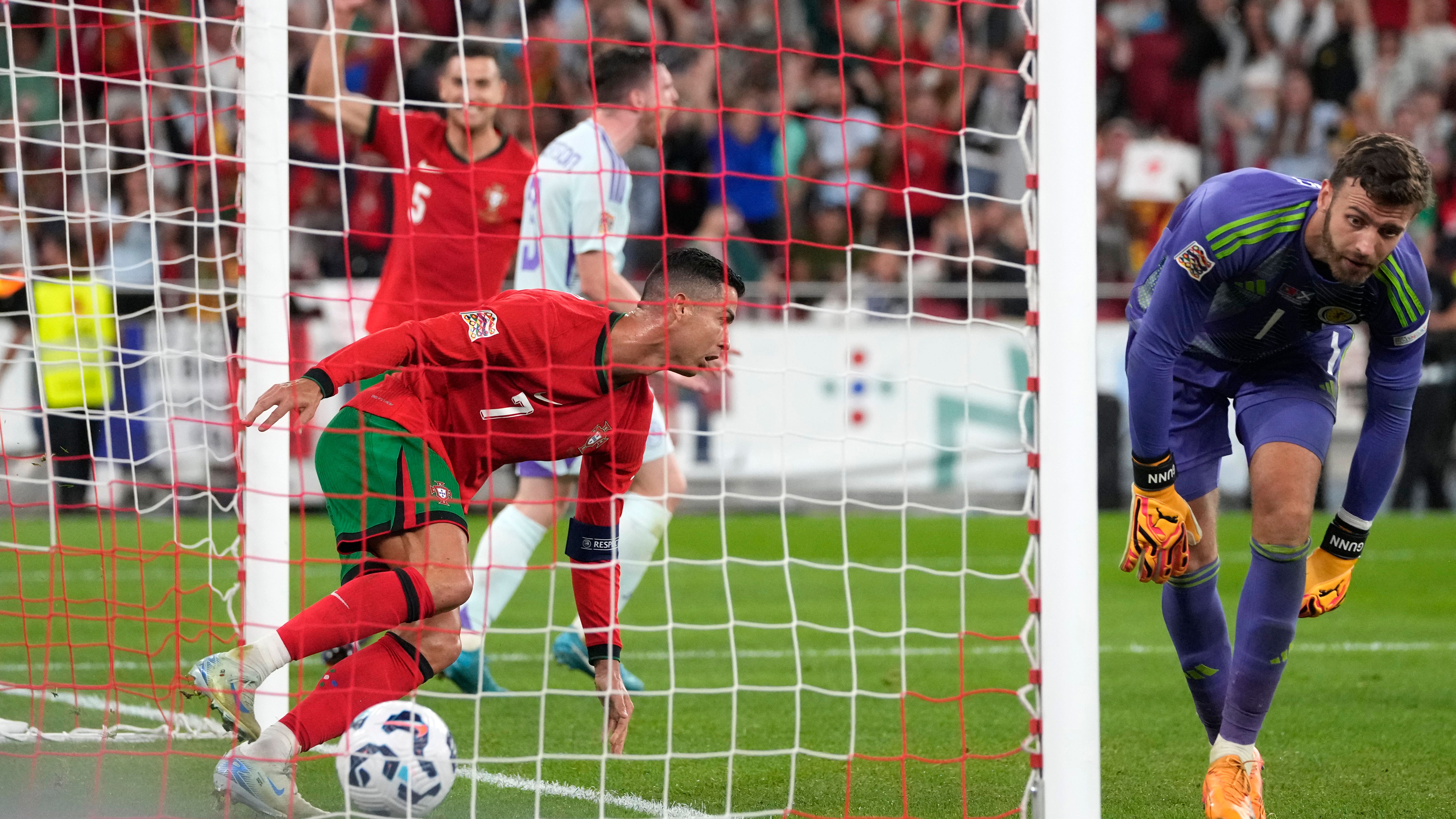 Scotland came back into the game but the tide turned again and substitute Ronaldo twice hit the post before knocking home a Nuno Mendes cross from close range in the 88th minute to seal a 2-1 win.